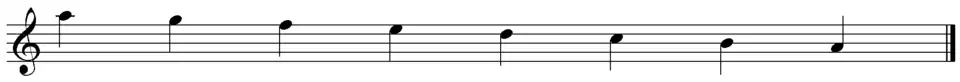 Note that the pitches are in reverse order because, obviously, we are descending downwards. The ascending form is a kind of combination between major and minor scales. It can be represented as WHWWWWH or: