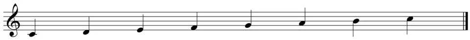 No doubt you have heard of the major scale before. As we have said above, the major scale is a diatonic pitch-class collection. The major scale employs seven of the twelve pitch classes and is composed of the unison (P1), the major second (M2), the major third (M3), the perfect fourth (P4), the perfect fifth (P5), the major sixth (M6), and the major seventh (M7) before repeating again. This particular selection of pitches is what gives the major scale its distinct sound and what differentiates it from other pitch-class collections (such as the minor scale).