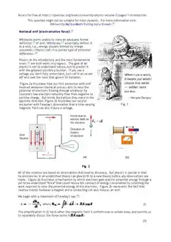 If you pull on a small loose thread on your sweater you might turn it into a pile of yarn. It all started because I was uncomfortable with how OpenStax University Physics deals with electromotive force. They say textbooks are like rivers that are a mile wide and an inch deep. That is true, but it is also true that textbooks need to be that way. What started as an attempt to clarify the use of ill-defined terms in physics morphed into a question that attempts to highlight the interplay between experimental observation and theoretical speculation that lead to the development of electromagnetism in the 19th and 20th centuries.