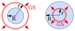 The field point can be either inside or outside the charged sphere of radius The Gaussian sphere is denoted as GS.