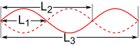 A quick way to find the wavelength of the n-th mode is to draw a single standing wave and allow the length, L, to be the variable. In this figure L is an integral multiple of a half wavelengths:
