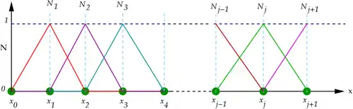 Let be a measure of overall fineness of the grid. Let us choose as basis functions the set of triangular functions shown in Figure 1.