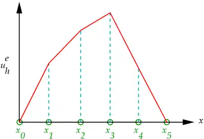 The idea of finite elements is to choose piecewise over subregions of the domain called finite elements. Such functions can be very simple, for example, polynomials of low degree. We measure the size of each subregion with a parameter . As decreases more elements are introduced and more basis functions are needed. The square integrability condition implies that jumps in the value of the function are not allowed at the nodes.