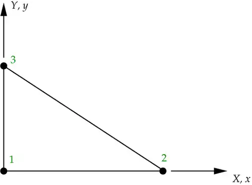 Figure 1 shows a linear three-noded triangular element in the reference configuration.