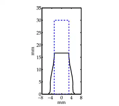 Consider the impact of a cylindrical Taylor impact specimen on a rigid target. The undeformed and deformed profiles of the specimen are shown in in Figure 3.