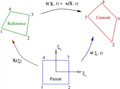 Maps from parent element to reference and current configurations