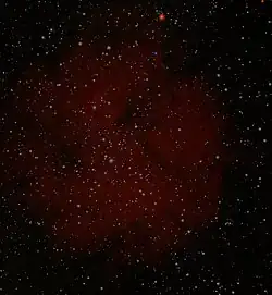 At right is a visual astronomy image of IC 1396 using narrowband filters: sulfur is red, oxygen blue and hydrogen in green. The image was captured using a Ritchey Chretien 12.5" with a 2180 mm focal length.