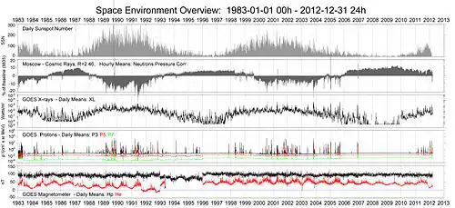 "[G]alactic (X-ray pulsars, binary systems - black hole candidates) and extragalactic (blasars) objects [emit] gamma-rays [in periodical processes] and high-energy neutral radiation (gamma-rays, neutrons) [is emitted from] solar flares."[24]