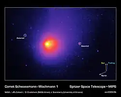 - ↑ 38.0 38.1 38.2 38.3 Dale Cruikshank (December 18, 2003). Comet Schwassmann-Wachmann 1. Pasadena, California, USA: NASA, JPL, California Institute of Technology. http://www.spitzer.caltech.edu/images/1115-ssc2003-06j-Comet-Schwassmann-Wachmann-1. Retrieved 2012-11-26.