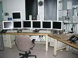The Munich Public Observatory "lecture room has 64 seats and a wide range of equipment for presentations: Slide-, video-, LCD- and overhead-projectors and a large screen with the dimension of 3 x 2.5 m. Lectures can be transmitted to our conference room."[73]