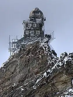The Sphinx Observatory at the Jungfraujoch in the Swiss Alps is a high altitude observatory less affected by the atmosphere. Credit: Eric Hill from Boston, MA, USA.