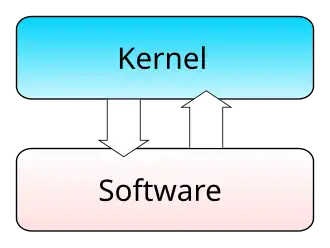 After preparing the hardware for use, the kernel provides an abstraction layer between the hardware and software running on the system. Through an application programming interface (API), software can request the kernel to perform hardware tasks, as well as access many common functions. Most current kernels also multi-task the hardware, sharing it between the various processes running on the system.