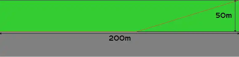 To work out the slope distance we use pythagoras' theorem. ie dist = [(200 - x)2 + 502]0.5