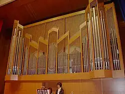 An organ is an wind/keyboard instrument that developed from the Roman hydraulus (invented c.40 BCE), a loud stadium instrument. It made its way into churches in the middle ages and into concert halls and civic centers (at least in large numbers) in the 19th century.