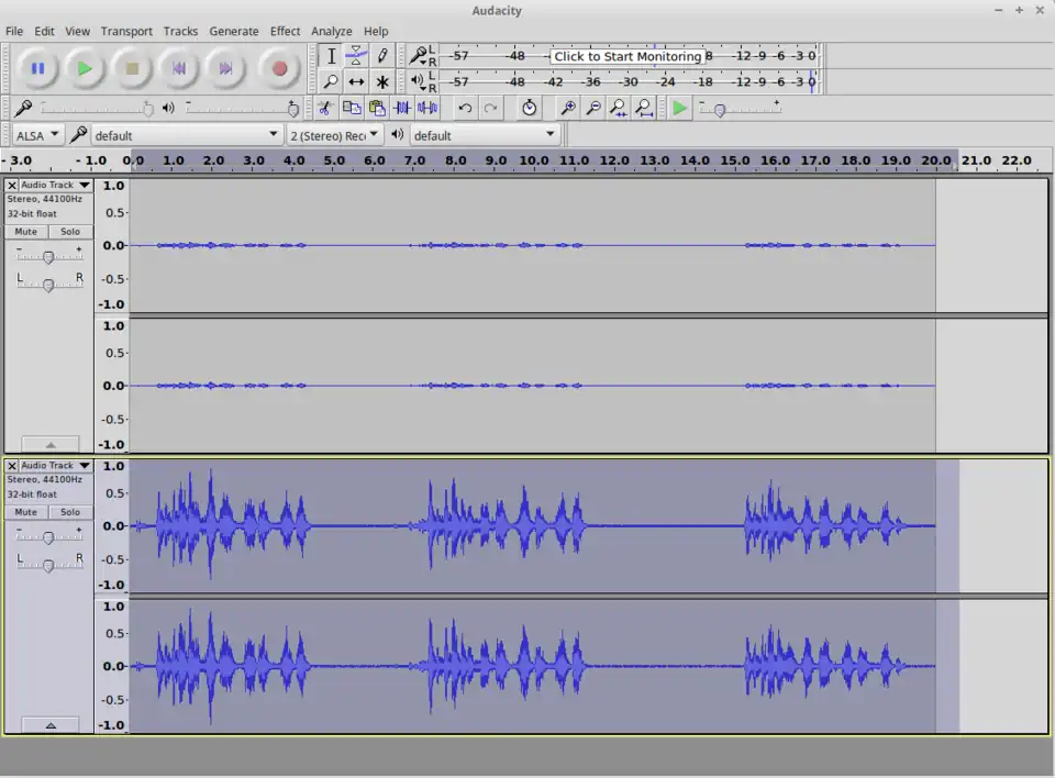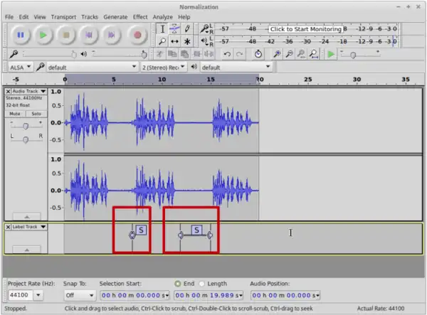 - The files can be directly exported without selection of parts (File → Export Audio).
