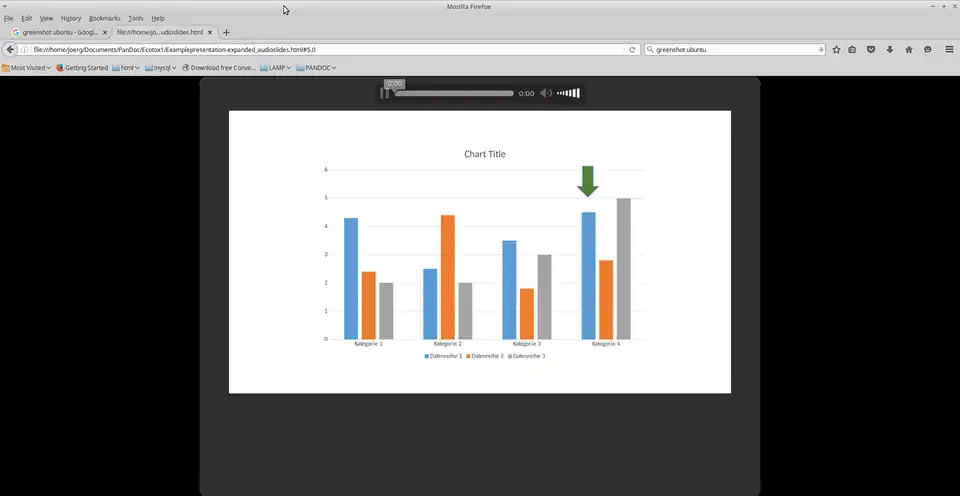 With the help of this tutorial the user should be able to create a HTML presentation with audio stream based on a Microsoft PowerPoint presentation or other presentation files. In the first part of this tutorial it is described, how to install necessary software applications. The second part consists of a step by step tutorial on how to create a HTML presentation and how to implement it in a learning management system (LMS). Originally, this tutorial was created for lecturers at a university. The most lecturers used Windows 10, Ubuntu 16.04 and OS X as operating system. Therefore, the commands used in this tutorial are based on these operating systems and might be different for other operating systems or versions.