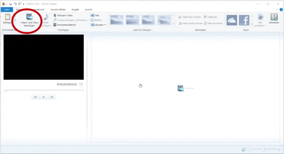 - Change to the tab „Startseite“ and select „Videos und Fotos hinzufügen“