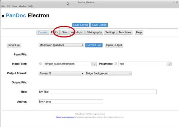 After PanDocElectron has started, first create a new project.