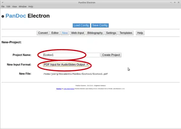 Choose a name for the project and a input format. In this tutorial we want to convert a PDF into a HTML audioslide presentation.