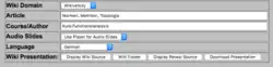 With the Wiki2Reveal Starter you can interactively select the Wikiversity Page for Wiki2Reveal and further more you can select the settings for Audio Comments. When start the Wiki2Real Presentation with the user interface of Wiki2Real a link is created that you can also copy into the source Wikiversity page, so that users can start the presentation from the Wikiversity page as well.