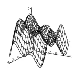 This is an image of the function . Hopefully, after you have gotten this far, you have seen functions and graphs of two variables. If you have not, then they are usually in the form F(x,y) in functions and are graphed like the graph above.