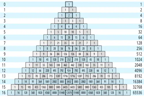 rows 0...16 of Pascal's triangle
