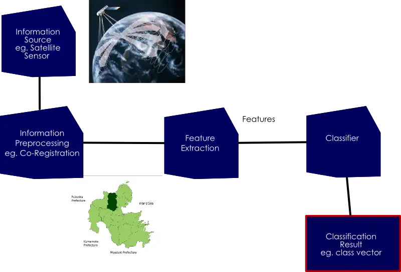 The process consists of three major steps after data acquisition. Datasets for pattern recognition can be from a wide range of sources like satellite sensor data, ground based sensor data, medical images and so on. Once the dataset is acquired it is preprocessed, so that it is suitable for subsequent sub-processes. Next step is feature extraction, in which, the dataset is converted into a set of feature vectors which are supposed to be representatives of the original data. These features are used in the classification step to segregate the data points into different classes based on the problem.