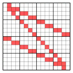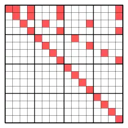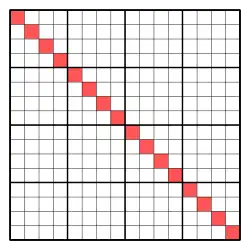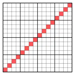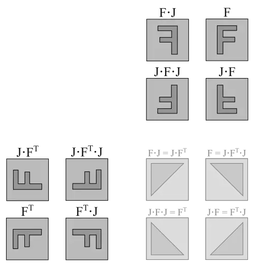 These four matrix products show the relationships between adjacent matrices in the 2×2 array. Those above/below show the relationship between adjacent rows/colums. Above the matrices related to P are rotated by 90°. (Compare the image on the right.)