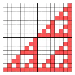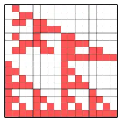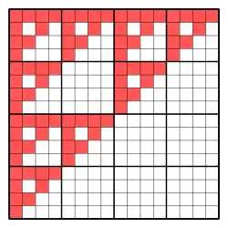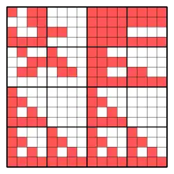 The compression matrices are arranged in a 2×2 array. Adjacent rows/columns are swaps in the Sierpinski/Zhegalkin permutation.