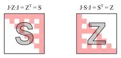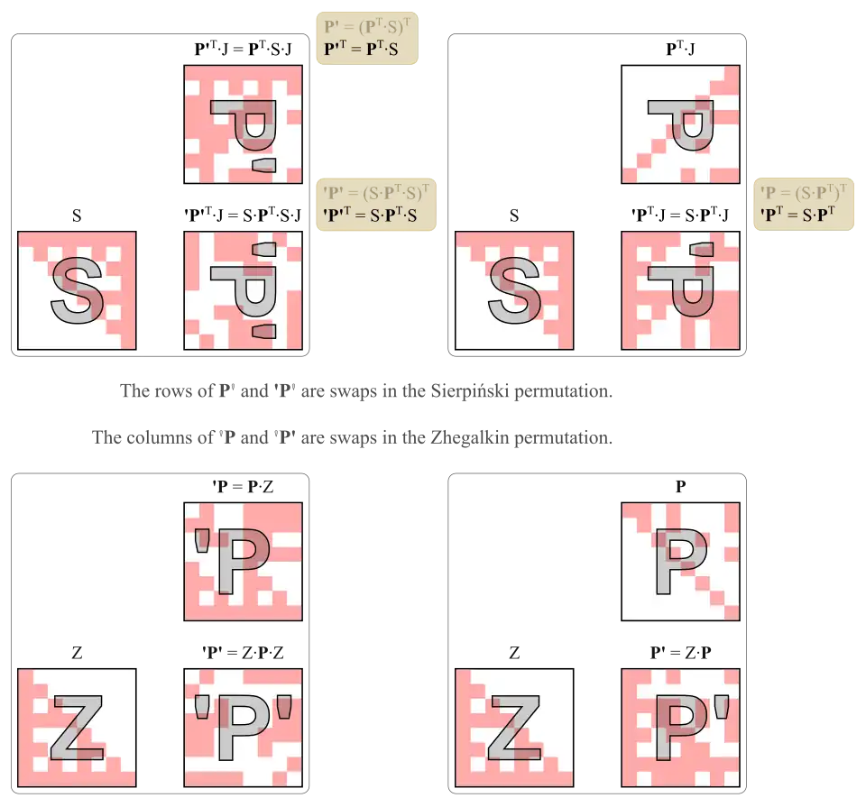 four compression matrices arranged in a 2×2 array S and Z denote the Sierpinski triangles. The binary pattern is that for the the serrator permutation.