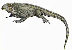 Archegosaurus, a genus of amphibian which lived during the Asselian to Wuchiapingian ages of the Permian, around 299-253 million years ago(4)