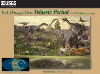 - ↑ National Geographic Society (2010). " Triassic Period". National Geographic Home » Science » Triassic Period. http://science.nationalgeographic.com/science/prehistoric-world/triassic.html. Retrieved 04/03/2010.