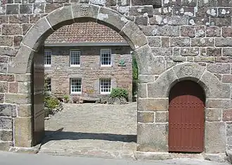 [1] Framing devices: wildflowers, river, tree. [2] Framing device: gateway. [3] Framing device: patio.