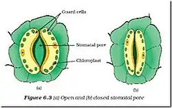 Pipe-like structures in the leaves, known as stomata, control the flow of carbon dioxide into a plant and the flow of oxygen outside of the plant. The flow of these gases are also regulated by gaurd cells, cells that open and close the stomata.