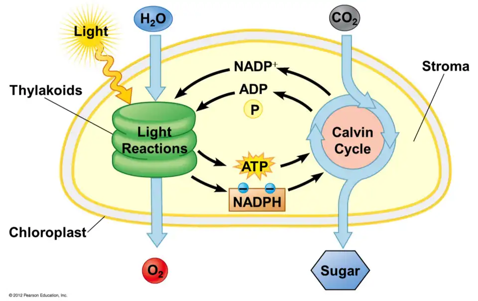 Now that we have the necessary "ingredients" to perform photosynthesis, we can get started! Photosynthesis occurs in two steps, the Light Reactions (also: light-dependent reaction) and the Calvin Cycle (also: dark-reactions, light-independent reactions, carbon fixation).
