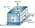 We now turn from two-dimensional medium to three-dimensional medium (Nc = 3). In this case, dimension of nodes equals two (flat wall of cell volumes in Figure 3), and the space of excitation must be four-dimensional, .