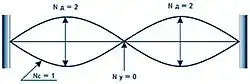 One-dimensional case for a string, sandwiched on both sides, is shown in Figure 1. String is linear system, the excitation occurs in the plane, and standing wave node represents a point object. Next, the dimension of systems will be considered in accordance with dominant extent. If we denote Nd – dimension of motion of a system, Nc – dimension of the system, Nу – dimension of the system nodes, then for the string where