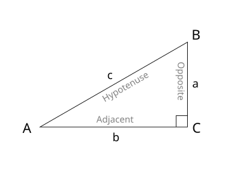 In this right triangle: sin A = a/c; cos A = b/c; tan A = a/b.