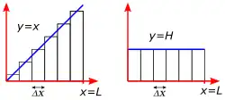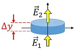 In the first figure, the field is uniform and in the direction. We use to denote the constant magnitudes of the field in the two regions. The minus sign in the contribution from arises from the fact that is antiparallel to .