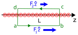 Note that the line integral vanishes along the paths bc and da because the . The field is uniform and parallel to the path along ab and cd.