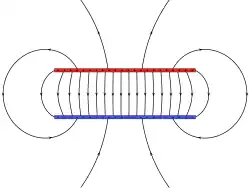 The pillbox is a useful Gaussian surface for infinite or very large slabs of charge. An important example is the parallel plate capacitor where each linear dimension of the plates is much larger than the plate separation.