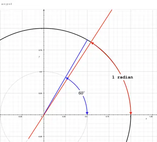 However, the natural angle is the radian, the angle subtended at center of circle by an arc on the circumference equal to the radius.