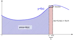 As shown in red, the change in area (∫fdx) of a function is closely related to the value of the function, f(x) at the point where x changes to x+δx