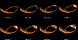 - ↑ 11.0 11.1 11.2 11.3 11.4 11.5 11.6 Tony Phillips (17 December 2009). Colliding Auroras Produce an Explosion of Light. NASA. http://wattsupwiththat.com/2010/01/08/colliding-auroras-produce-an-explosion-of-light/. Retrieved 2015-12-02.