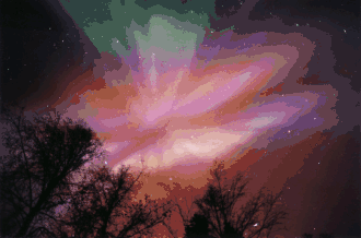 "Pulsating auroras are so-called because their features shift and brighten in distinct patches, rather than elongated arcs across the sky like active auroras. However, their appearance isn't the only difference. Though all auroras are caused by energetic particles--typically electrons--speeding down into Earth's atmosphere and colliding brilliantly with the atoms and molecules in the air, the source of these electrons is different for pulsating auroras and active auroras."[9]