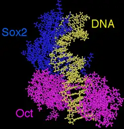 - ↑ Molecular Basis for Synergistic Transcriptional Activation by Oct1 and Sox2 Revealed from the Solution Structure of the 42-kDa Oct1·Sox2·Hoxb1-DNA Ternary Transcription Factor Complex by David C. Williams, Jr., Mengli Cai and G. Marius Clore in Journal of Biological Chemistry (2003), Vol. 279, Issue 2, 1449-1457