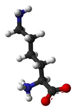 K | Lys | Essential for humans. Behaves similarly to arginine. Contains a long flexible side-chain with a positively-charged end. The flexibility of the chain makes lysine and arginine suitable for binding to molecules with many negative charges on their surfaces. E.g., DNA-binding proteins have their active regions rich with arginine and lysine. The strong charge makes these two amino acids prone to be located on the outer hydrophilic surfaces of the proteins; when they are found inside, they are usually paired with a corresponding negatively-charged amino acid, e.g., aspartate or glutamate. |