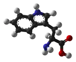 W | Trp | Essential for humans. Behaves similarly to phenylalanine and tyrosine (see phenylalanine). Precursor of serotonin. Naturally fluorescent. |