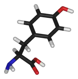 Y | Tyr | Behaves similarly to phenylalanine (precursor to Tyrosine) and tryptophan (see phenylalanine). Precursor of melanin, epinephrine, and thyroid hormones. Naturally fluorescent, although fluorescence is usually quenched by energy transfer to tryptophans. |