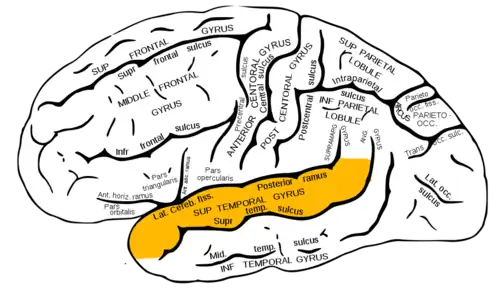 The study of the neuroanatomy of speech perception has been a topic of interest for over 130 years. [1] However, the full characterization of speech perception has yet to become complete. In the 1870s, Carl Wernicke [1] developed the first hypothesis in understanding the functional neuroanatomy of speech perception. Wernicke hypothesized that the auditory cortex supports speech perception from patients of his with auditory language comprehension disorders, typically with left superior temporal gyrus (STG) lesions (see Figure 1 for neuroanatomical location). Patients with these symptoms were later termed Wernicke aphasics. In the 1980s, Damasio & Damasio [2] found that large lesions to the left superior temporal gyrus did not lead to auditory speech comprehension problems, but rather deficits in speech production. These discrepancies in the literature created some ambiguity as to whether the STG was involved in speech perception or not. Damage to the left frontal, or inferior parietal areas created deficits in identification and discrimination of speech syllable tasks. [3] This discovery raises the question of the involvement of a frontal-parietal circuit in speech perception. The development of functional magnetic resonance imaging (fMRI), the ambiguity was not eliminated with the use of passive listening tasks as hoped. Activations were visible in all of these areas including the STG bilaterally [4]. Using syllable discriminations tasks Zatorre and collegues[5] found prominent activation in the left inferior frontal lobe. However, many authors have suggested that the inferior frontal lobe may have been activated as a result of task-dependent phonological working memory processes [6].